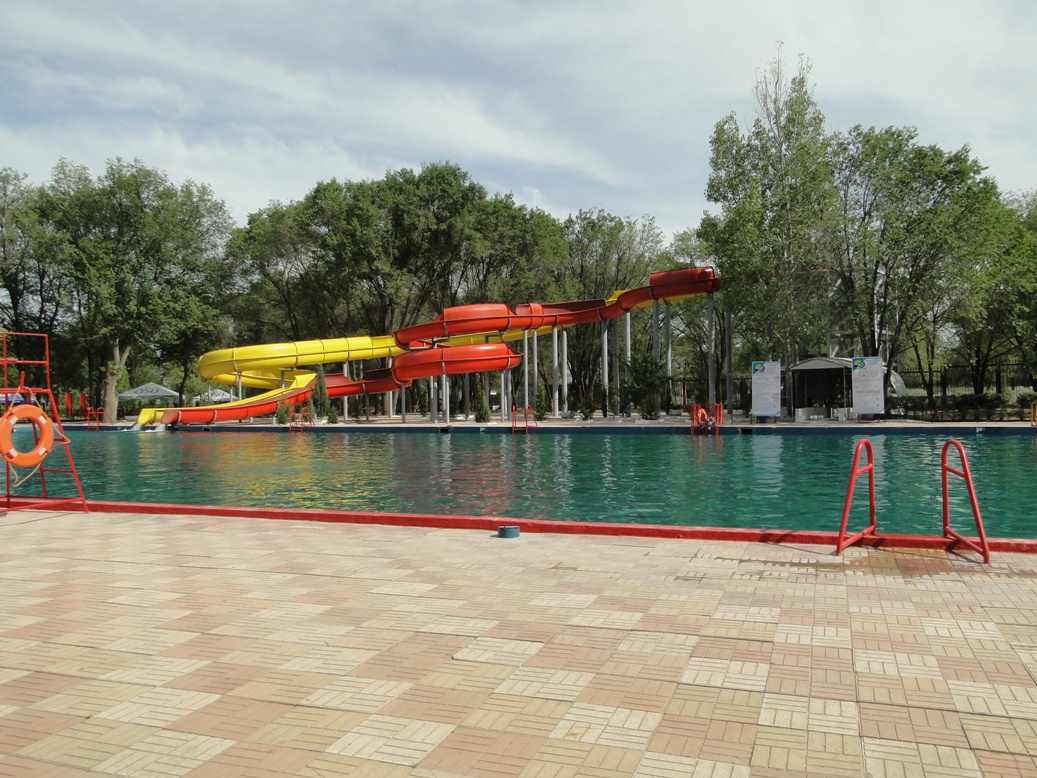 2 пластиковые горки длинной 2,5 и 5 метров, водяной зонтик и гусак